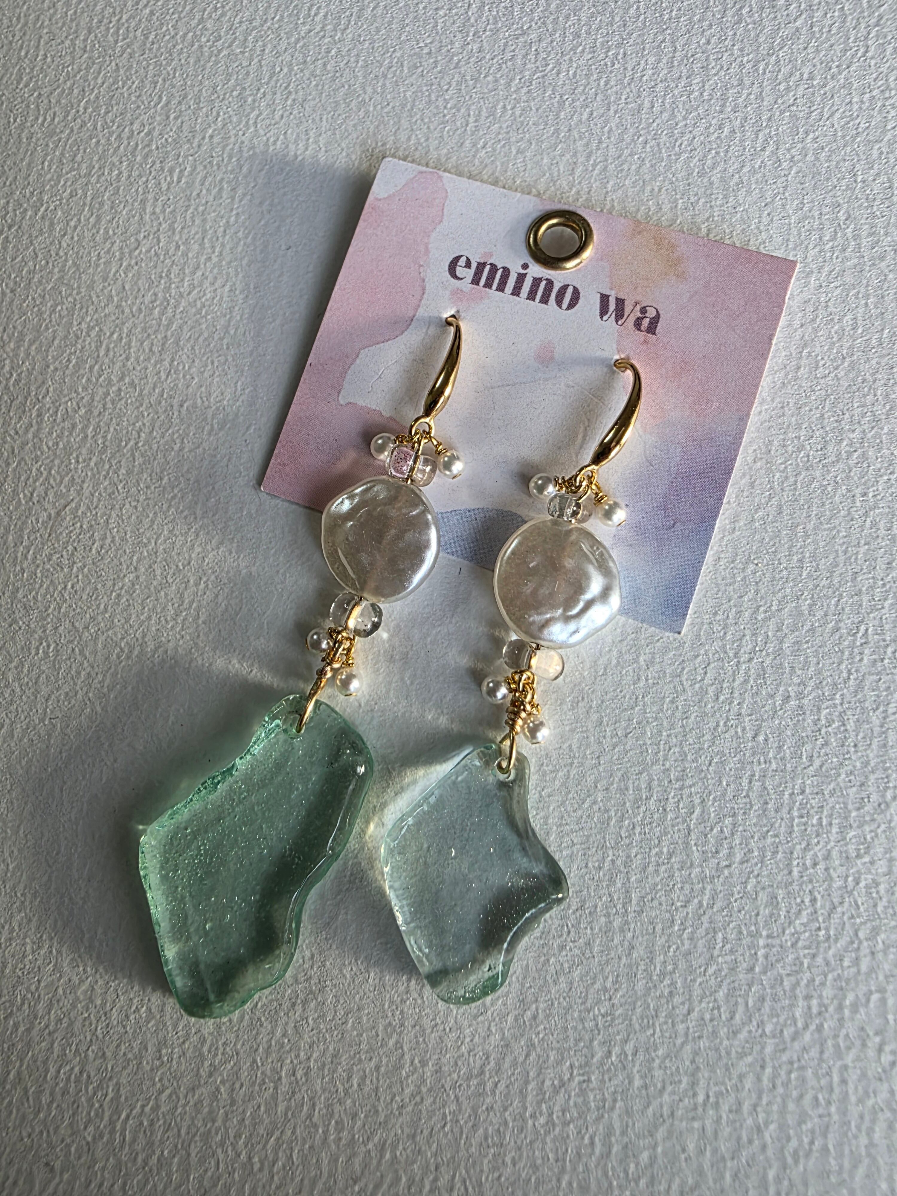 海でひとつひとつ拾い集めた天然のシーグラスを使用しています。自然が生み出した風合いのため、小さな傷や個性が残ることがありますが、それも唯一無二の魅力としてお楽しみください。