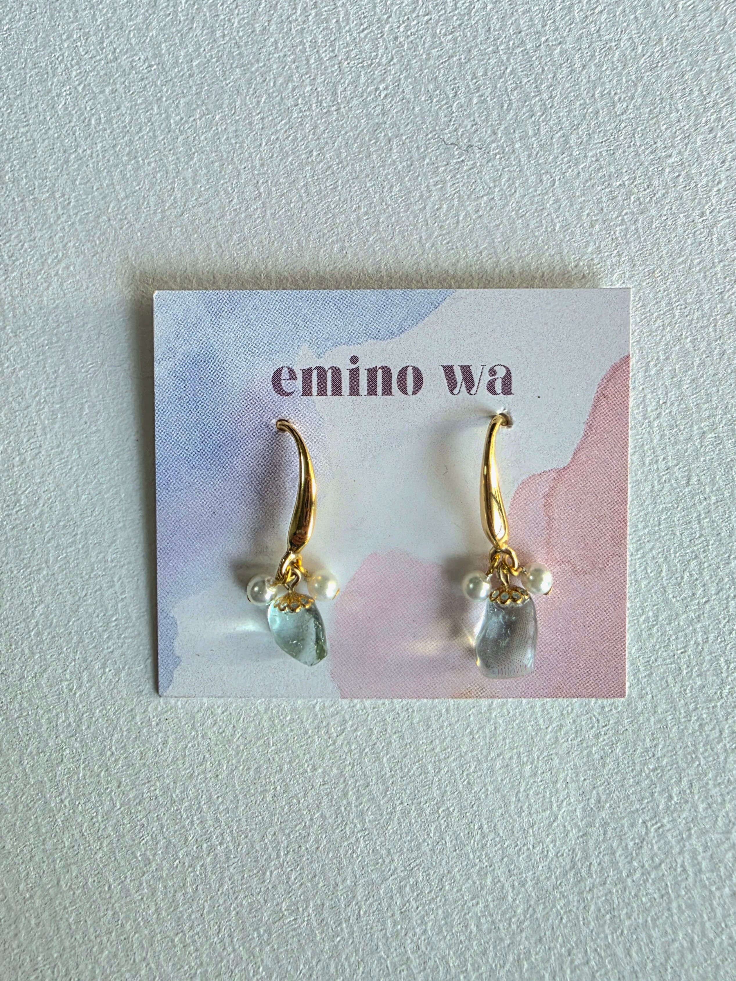 海でひとつひとつ拾い集めた天然のシーグラスを使用しています。自然が生み出した風合いのため、小さな傷や個性が残ることがありますが、それも唯一無二の魅力としてお楽しみください。