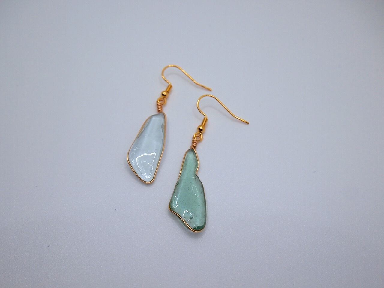 このピアスは、シーグラスを使用しており、太陽光に照らされることでその美しさが一層引き立ちます。外出するのが楽しみになること間違いなしです!