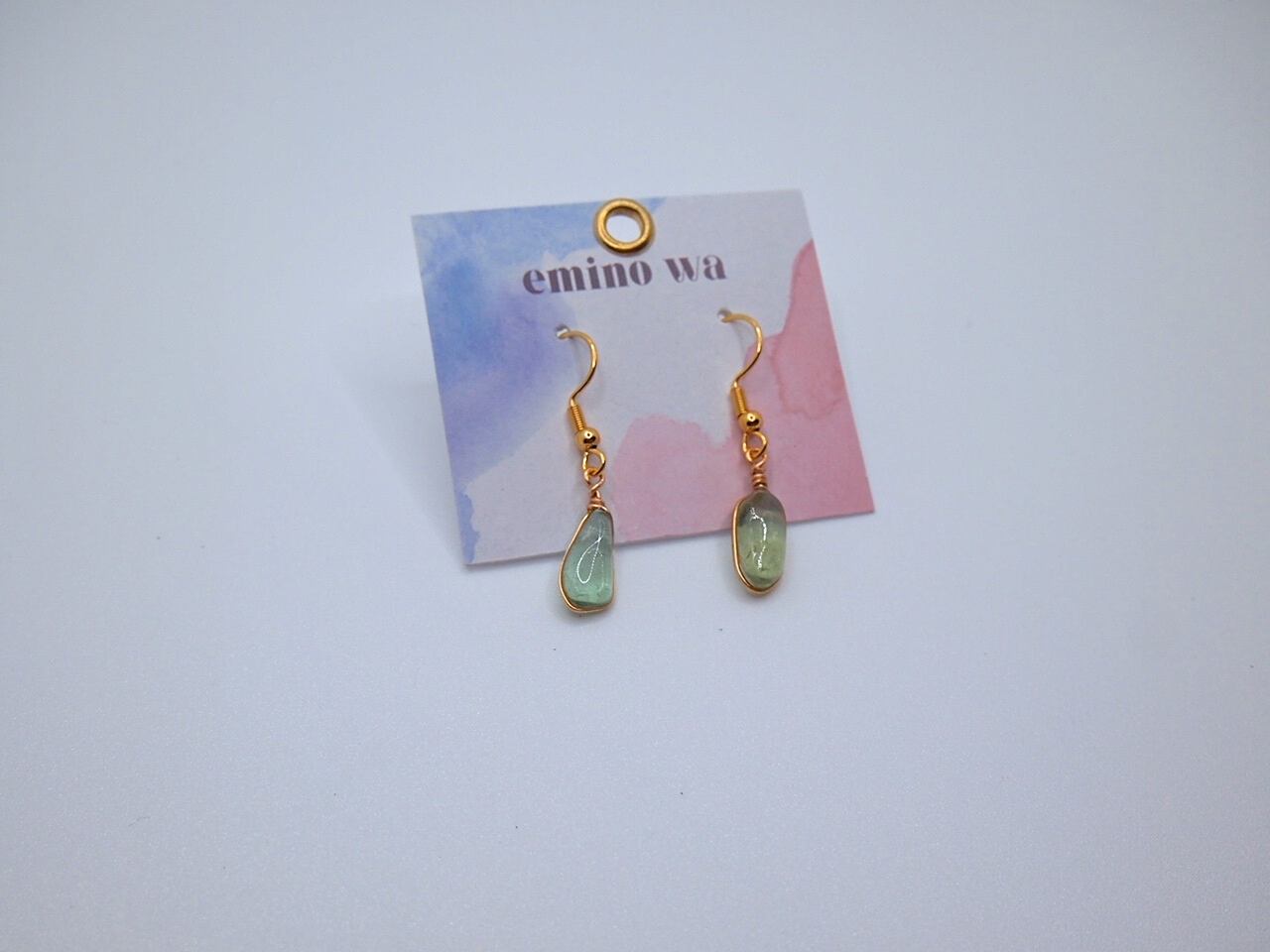 このピアスは、シーグラスを使用しており、太陽光の下で特に美しさを発揮します。外出するのが楽しみになること間違いなしです!