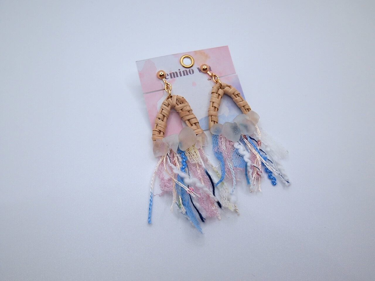 自然な素材で作られたイアリングは、デイリースタイルを格上げするアイテムです。ラタンとシーグラスのコンビネーションが、軽やかで洗練された印象を与えます。シーグラスの柔らかな色合いが光を受けて、耳元でさりげなく輝きます。普段使いから特別な日まで、幅広くご活用いただけるデザインです!